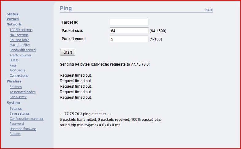 V tom routeru je kolonka ping. Nevím jak to bude vypadat uvnitř, potřebuju ale zkusit ping ip 77.75.76.3