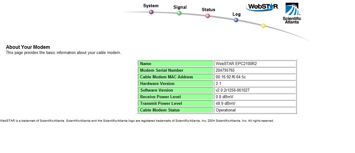v příloze je screen z uvodni stranky , a tohle to píše když kliknu na Status, Signal nebo Log :-(