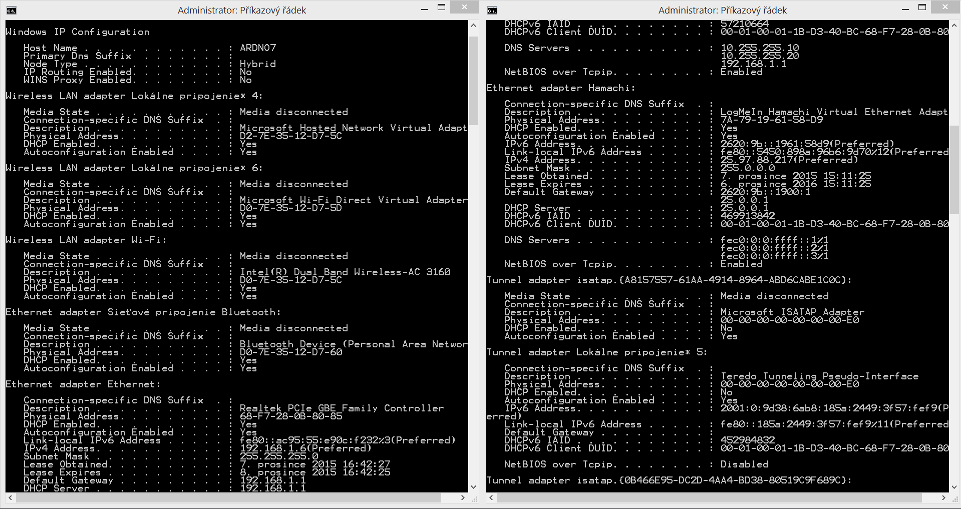 Dej sem ten screen ipconfig /all. A screen nastavení síťovky LAN. A screen z nastavení připojené síťovky WiFi.
