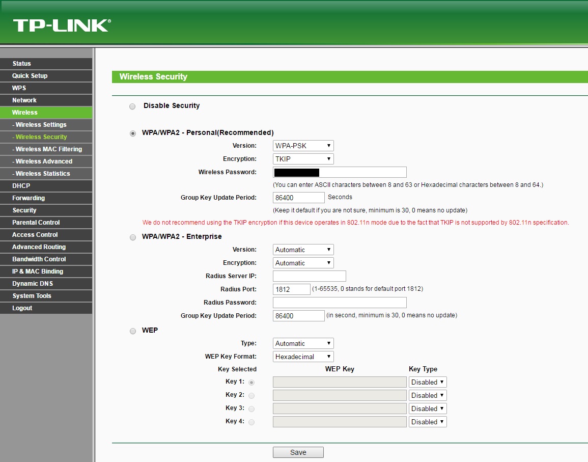 Nastav iba WPA2-Personal , samozrejme aj na TP-Linku.Kódovanie nechaj ako naskočí a nastav tiež rovnako.Ja mám AES.