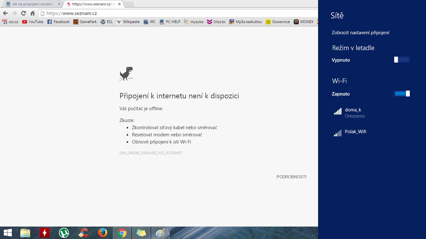 Po propojení 2 routerů nefunguje na repeateru internet, síť ano