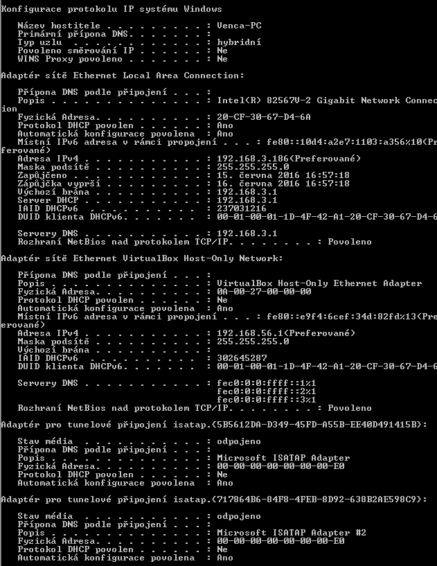 Až zase připojení vypadne, tak otevři příkazový řádek Windows, zadej do něj příkaz ipconfig /all a potvrď. Výpis pak dej sem (třeba jako screenshot do přílohy, můžeš ho taky zkopírovat).