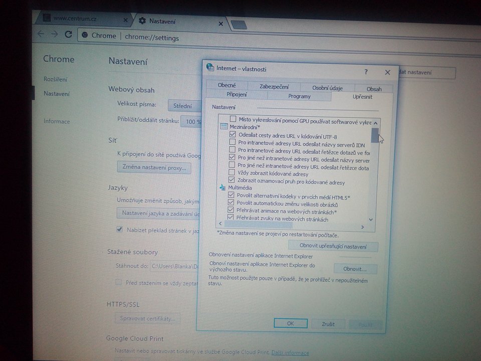 Řeším problém u matčina notebooku. Od včerejška se nemůže připojit k internetu. Jakmile zapne prohlížeč vyskočí ji tabulka "Nedostupného webu , připojení bylo restartováno"
