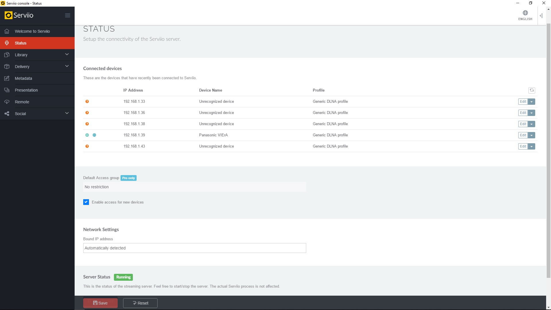 mám problém s DLNA serverem. Používám program serviio a vše donedávna běželo bez problémů. Dnes jsem však zjistil, že DLNA server sice běží, ale v seznamu zařízení (Connected devices) je u mé TV červený kroužek (Inactive). Ověřil jsem IP adresu TV - je správně zadaná. Stejně tak myslím, že je serviio povoleno ve firewallu. Nevíte, v čem by mohl být problém.