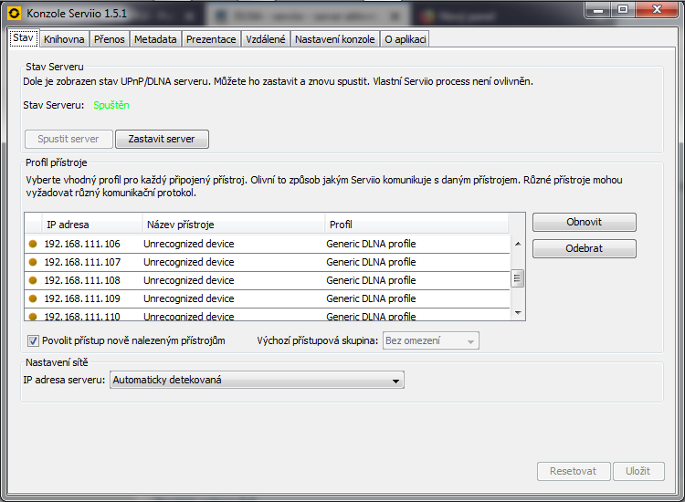 Re: DLNA - serviio - server aktivní, zařízení neaktivní