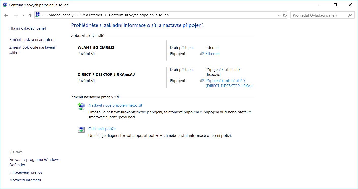 Tak tohle (smímek), to není moc prima ! Já však mohu softwarem změnit kanály v tomto pásmu u 3 ze 4 vysilačů. Kanál pro DIRECT-FIDESKTOP však "přišpendlit" neumím. A co horšího - on putuje a často se "pověsí" třeba přesně na stejný kanál který je již ručně obsazen. Nechat všechno na "auto-kanallizaci" je ta nejhorší varianta. Navíc mně u toho vadí, že se všechno stále vypíná, přesunuje, zapíná a tím dochází k pádům v aplikacích (skipe a pod.) Mně již ani nejde o to zda je to nutné či ne, rád bych věděl zda to jde nebo ne. (Amatérsky) jsem propátral vše o nastavení wi-fi direct přímo na notebooku, konfiguraci i registry, ale nic o možnosti nastavit komunikaci na konkrétní kanál, či šířku pásma jsem nenašel.