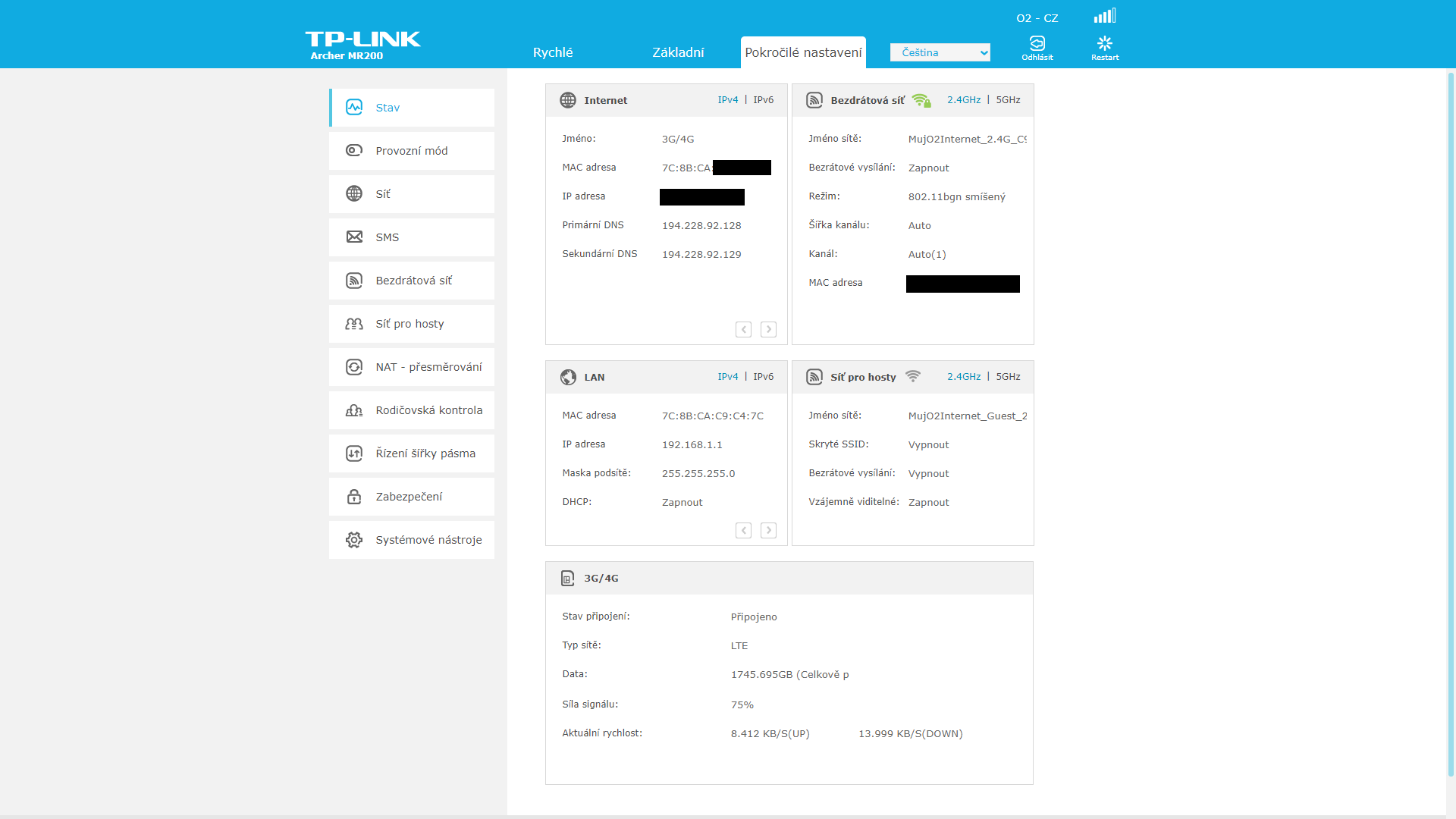 Dej sem screen statusu routeru. To, co mám začerněno já, zamaž.