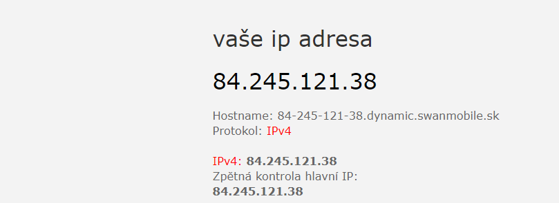Samozrejme, moja IP adresa nevyzerá ako "public IP", ale napr v Sobotišti lokálny poskytovateľ využíva adresy začínajúce 185.X.X.X (myslím, že tento rozsah používa telekom), a to už mýlne byť môže