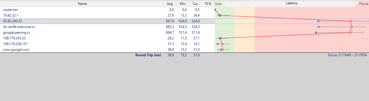 Ono je to trochu složitější, ale pokusím se to shrnout. Poskytovatel internetu tady na vesnici čerpá internet od Metronetu, vzdálenost od Metronetu a 'základnou' tohoto poskytovatele je zhruba 35 km. Poté se šíří různými body na nejvyšších místech, a slouží jako zrcadlení pro schopnost připojení kohokoliv. Záchytný bod, od kterého čerpám je zhruba 10m od antény, která je na půdě.satik píše:Nejdřív bych to zkusil vykomunikovat s poskytovatelem a přes tracert ověřit, kde ty výpadky a nárůsty pingu vznikají, často si i někdo stěžuje na net a přitom je to problém s jeho routerem. Případně s poskytovatelem zkusit vykomunikovat lepší anténu, pokud to není někde na poskytovatelově páteřní síti ten problém.