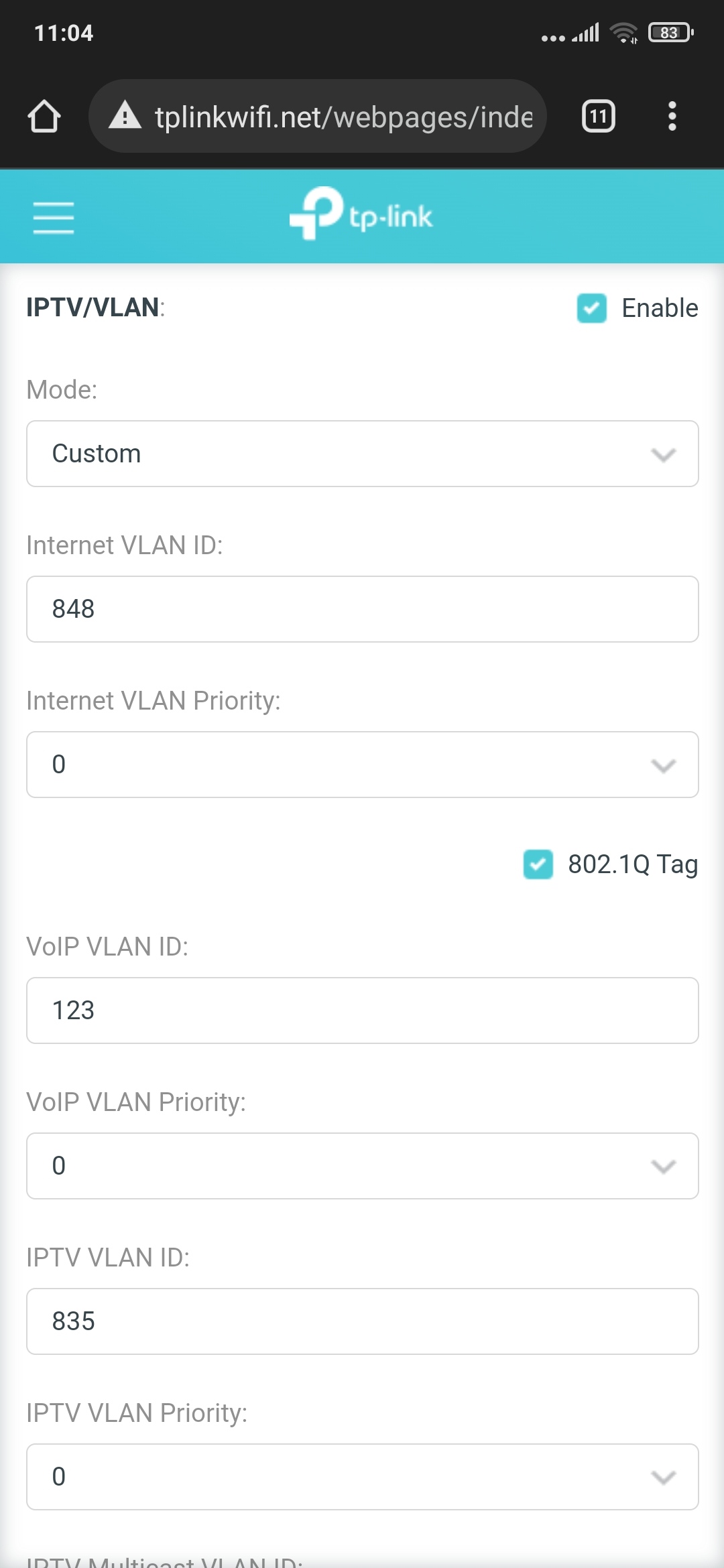 Tenhle TP link nenechá uložit nastavení když nejsou vyplněny ID na VOIP a IPTV, na stránkách TP linku radí nastavit jakékoliv číslo pro tyto dvě. IPTV využíváme tak nastavuji 835 jak radí O2 a 848 pro internet VLAN ID, pro VOIP nějaké číslo v rozmezí co to ukazuje. Stejně nic, zkoušeny už tři routery se kterými mají uživatele zkušenosti že to funguje, zítra zkusím zavolat na O2 jestli tam není nějaký problém z jejich strany.