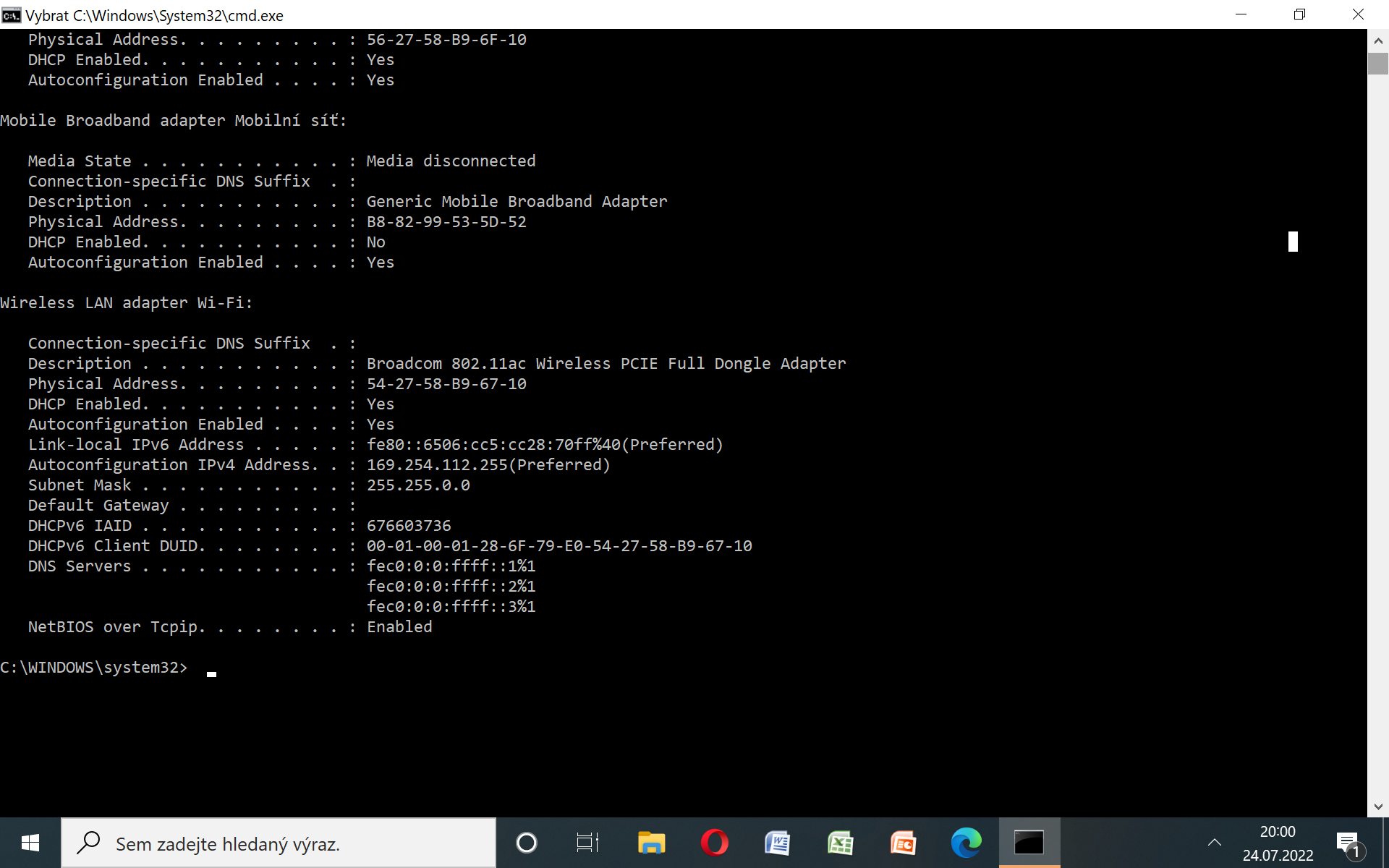 To bychom se dověděli z toho ipconfigu.