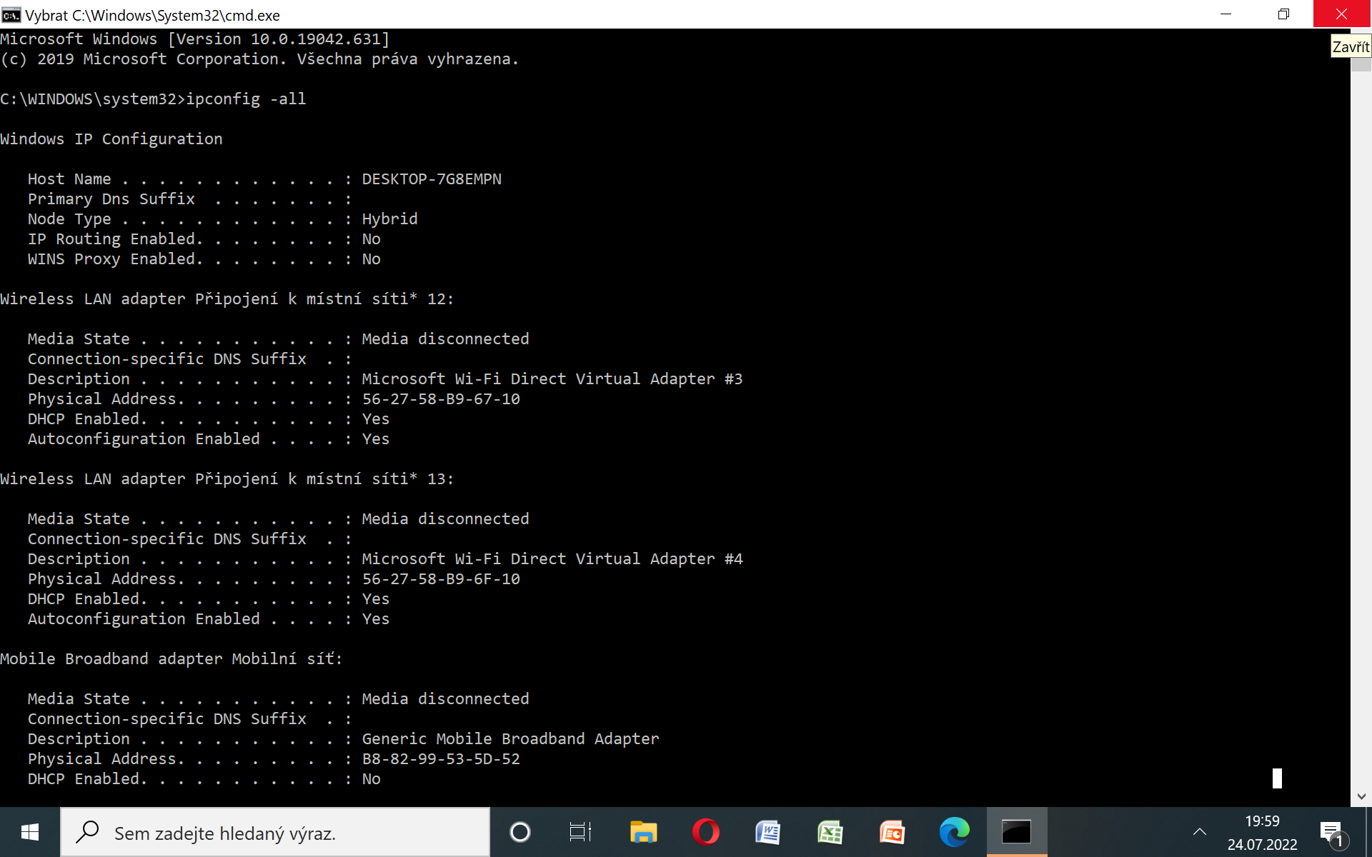Zkoušela jsem rady, co jsem našla na internetu - napsat do příkazového řádku ipconfig/release ... ipconfig/renew ... atd bez úspěchu.