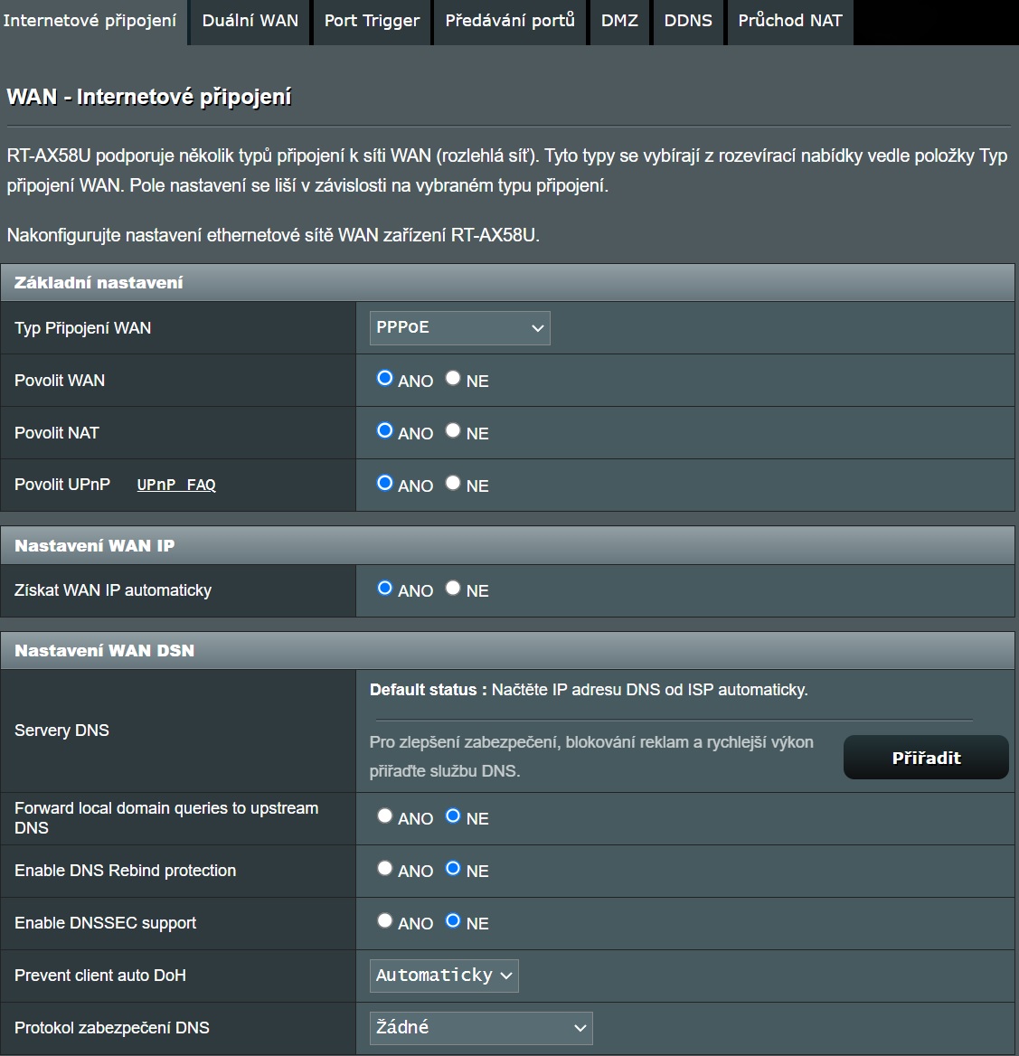 Zjistil jsem ale že AX58u podporuje PPPoE a VlanID takže se snažím zrušit jejich ZTE H267A a nastavit svůj ASUS.