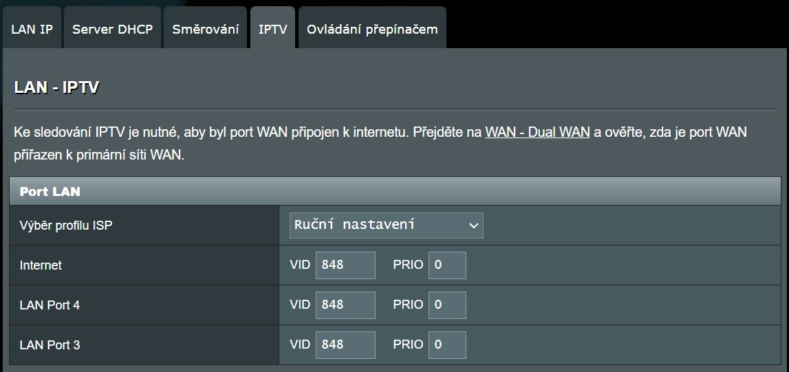 Tak vyřešeno, vyresetoval jsem Asus do továrního nastavení přepnul na PPPoE a nastavil v IPTV 848 a funguje.