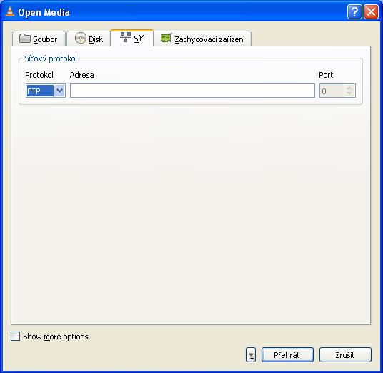 Pokud to chceš přes FTP, tak dej ve VLC Open Network Stream a vyber FTP.