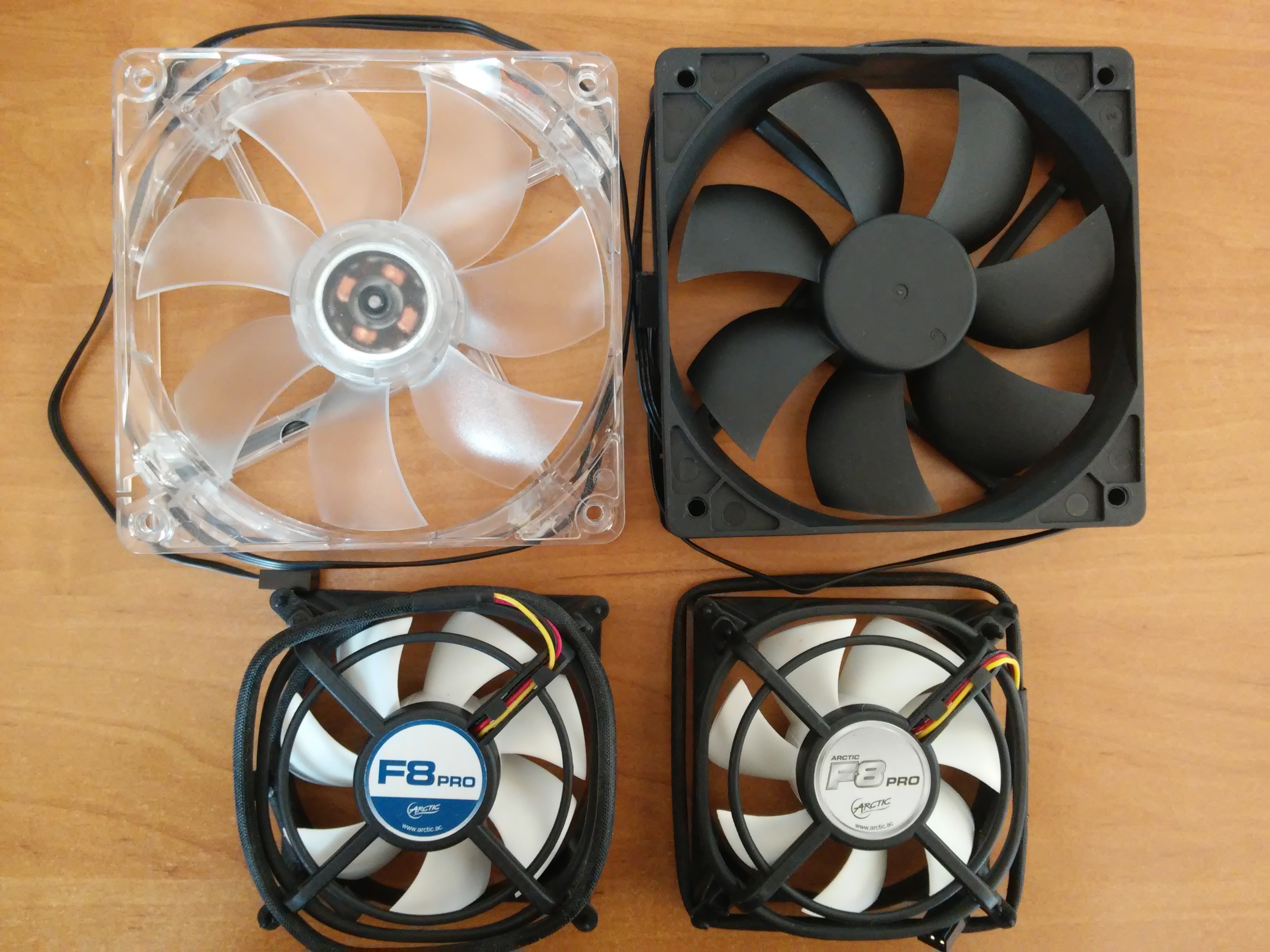 4) F8 Pro Low Speed Ultra Quiet Case Fan, nový, nepoužitý, 9 cm, 1 300 otáček, 26,4 CFM/44,9 m3/h, Fluid Dynamic Bearing, 0,2 Sone.