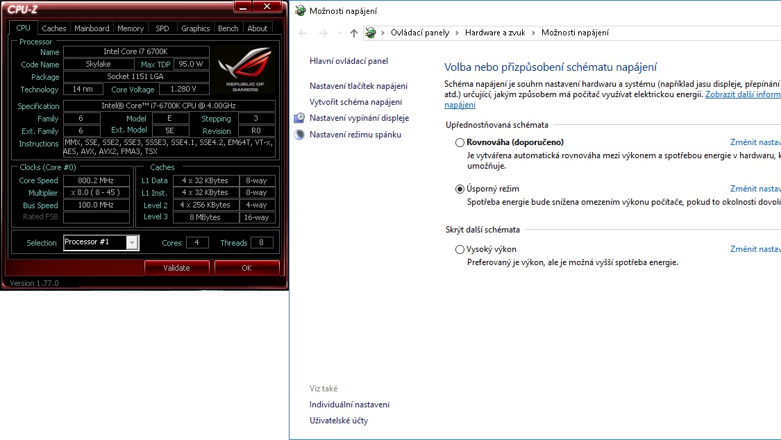 Dobře o něco jsem se tedy pokusil a prosím vás ještě o kontrolu hodnot. Po zapnutí pc a nastavení v možnostech napájení jsou hodnoty frekvence a napětí CPU následující: