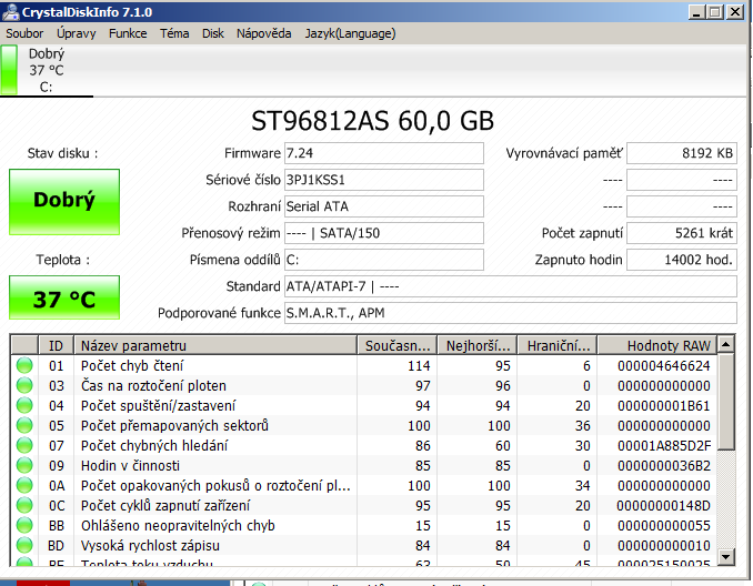 Zapnuto: 2719 hodin Zařízení: WDC WD3200LPVT-00G33T0