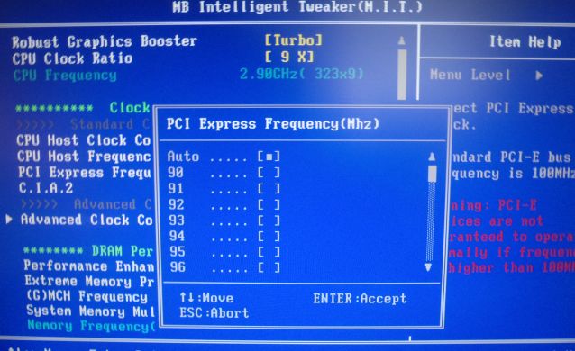 PCI Expres hodnota LOCK tam není, pouze AUTO a poté hodnoty od 90 do 150 .Pokud upravím děličku, jaká musí být hodnota, menší než 1066?Přesně mi to tak nějak nevychází