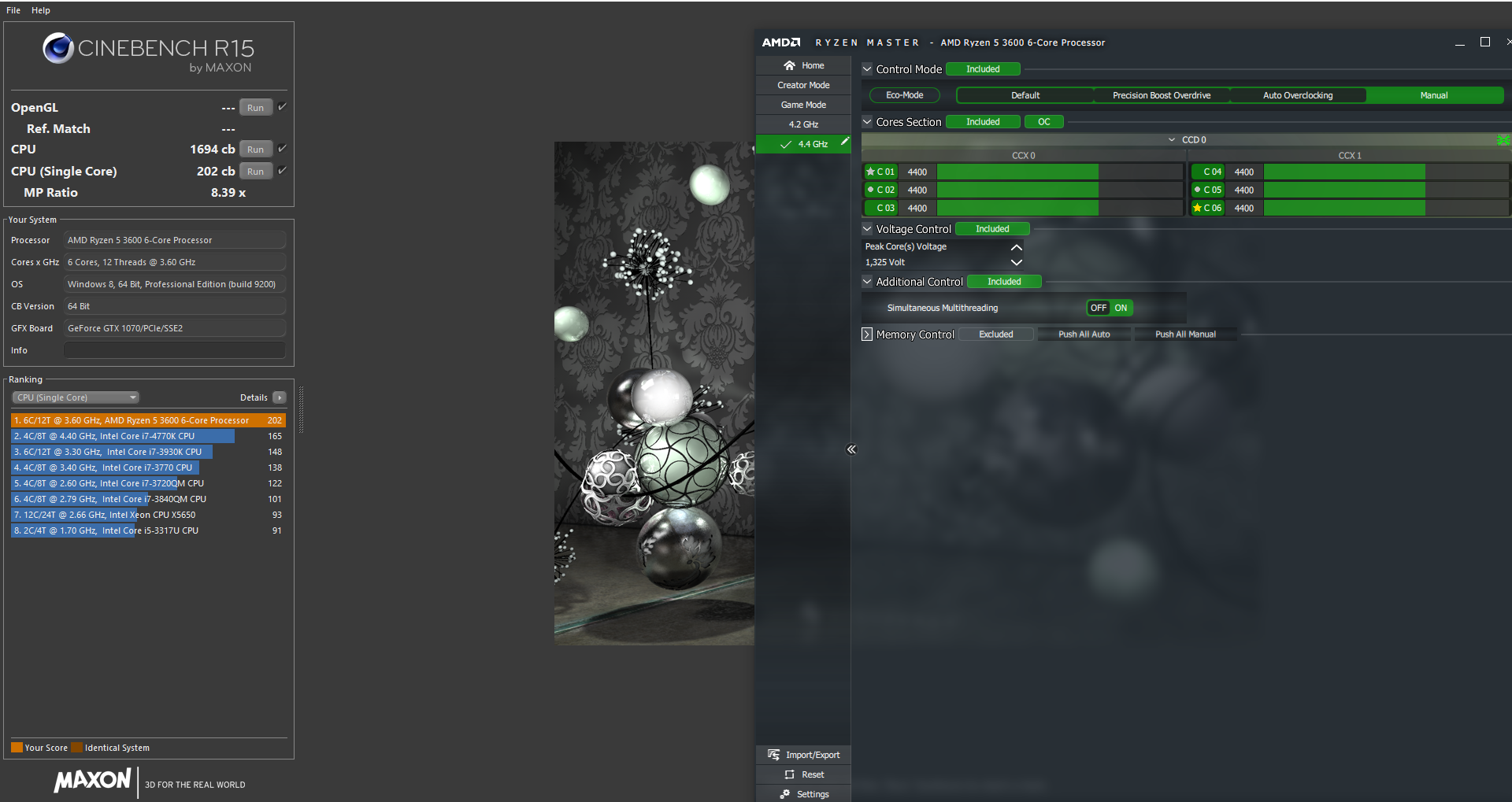 Já teda nevím, v Ryzen master vidím 4,4GHz, ale R15 ti ukazuje 3,6GHz.