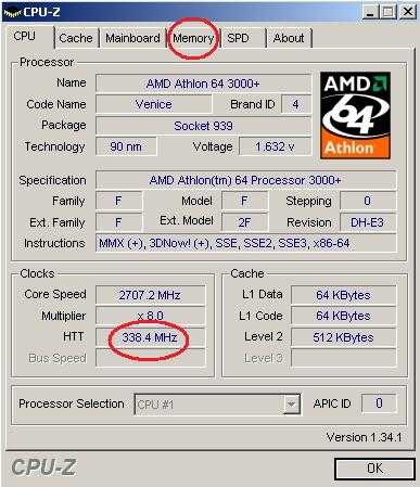 Nejlepší bude,stáhnout si program CPU-Z a tam se podívat přímo jakou máš frekvenci HTT a pamětí.Lepší je nastavit HT ručně,tak aby byl násobek roven hodnotě okolo 1000Mhz.Na obrázku níže ve spodním oválu je to 3X338Mhz.Paměti máš pod záložkou v druhém oválu.Děličku bys měl taky nastavit podle pamětí.V BIOSu to bývá pod položkou Multiliper.Výsledná frekvence by měla být stejná jakou tu paměť mají v základu.