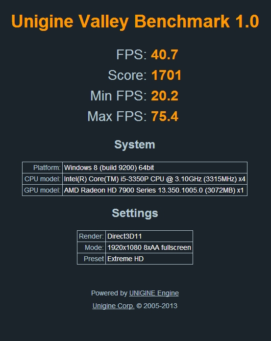 Re: Změřte výkon s ostatními v Unigine Valley 1.0