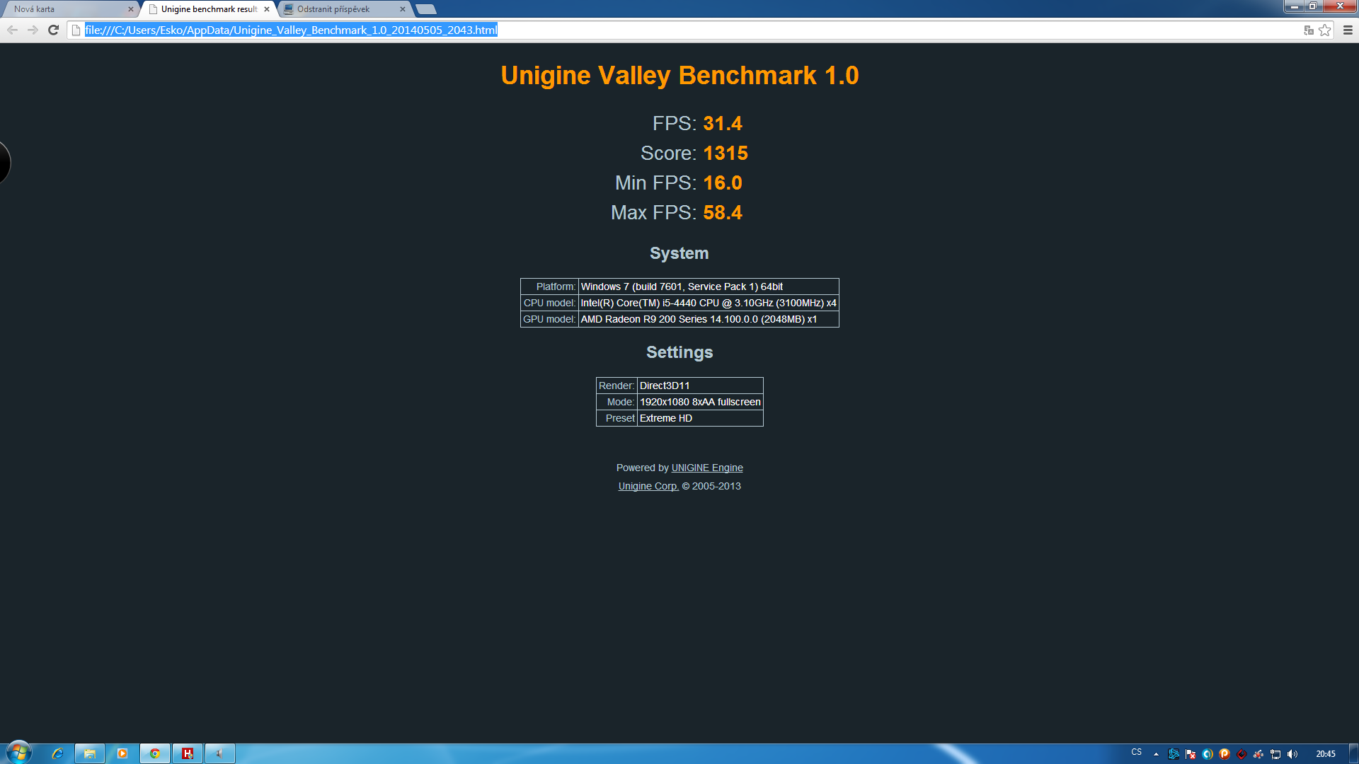 Re: Změřte výkon s ostatními v Unigine Valley 1.0