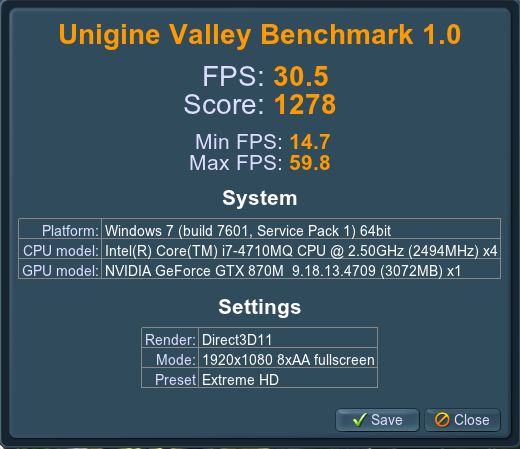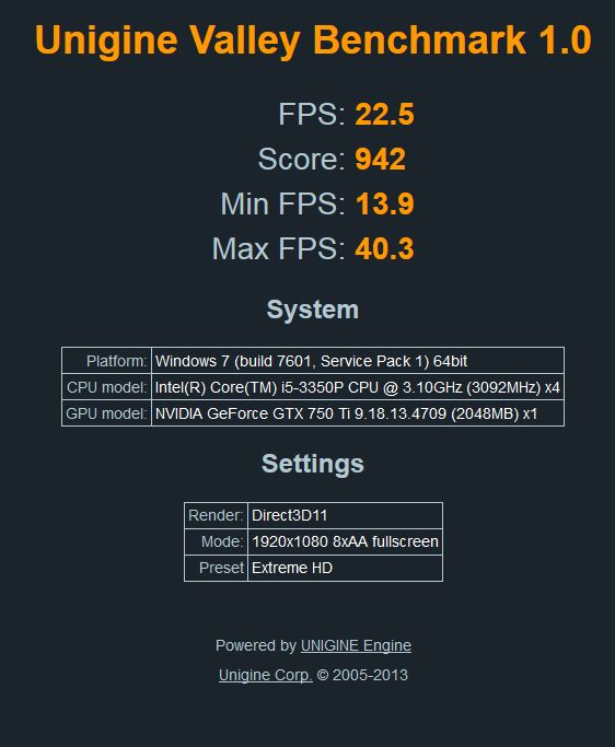 I tak je to nějak málo, vycházím z toho, že 750ti by měla rozjet BF4 na max na 35fps +-... a já s mojim notebookem mám pri BF4 na max lagy.. a v Ungine Valley jsem získal +-1300 bodů... to je o 350 více..