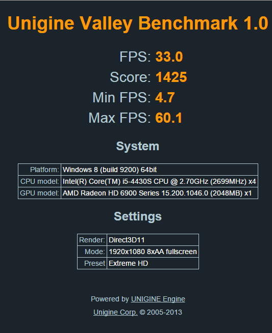 Re: Změřte výkon s ostatními v Unigine Valley 1.0