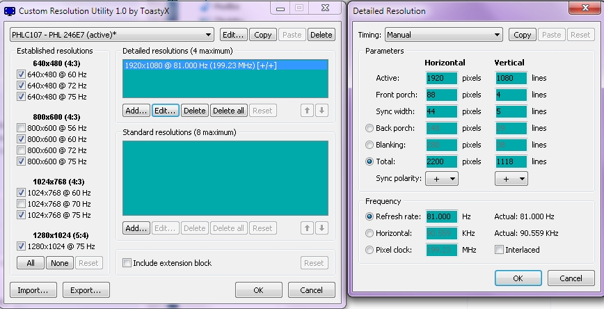 A máš to přetaktování aplikované i přes CRU? Protože to co jsi mi poslal hlásí jen preferované časování při 60hz. U mě je tam 81hz.