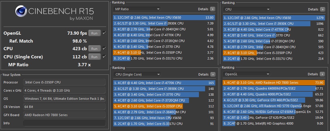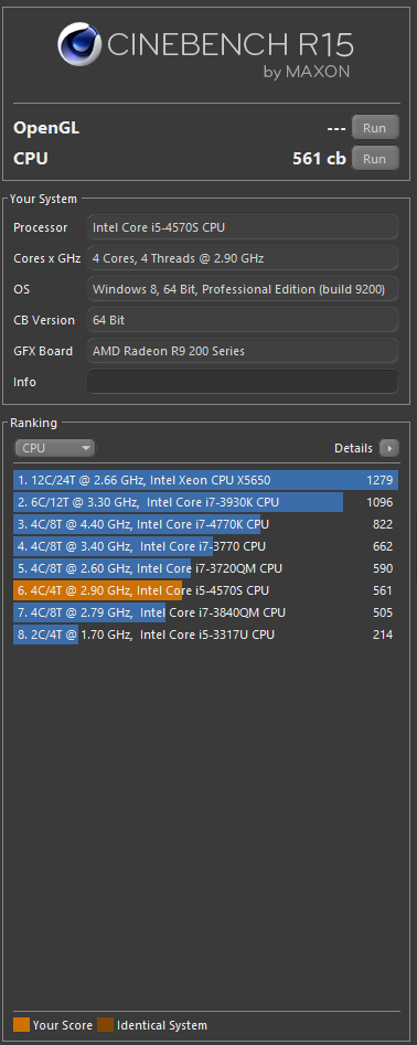 Oxxid: nejspíš paměti, má 1600 MHz cl9, možná další odchylkou by mohl být jiný OS (Win8/8.1 dává v Cinebench o něco lepší skóre) a nebo méně otevřených apliakcí na pozadí během testu.