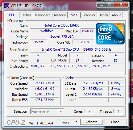Čau,chtěl bych se tu s vámi podělit o takovou zaujímavost:Mám procesor Intel Core 2 Duo E8400 jen tak jsem si chvilku prohlížel CPU-Z a chvilkami v Core Speed byla frekvence někdy i 8 GHZ většinou to skáče v rozmezí 2-3Ghz (1997-2997) ale chvilkami tam bylo i kolem 7Ghz vím že to má skákat ale nevím jestli na až takhle vysoké frekvence ale je to docela dlouhý interval oproti tomu když tam skáče 2-3 GHZ tak to jsou max 2 vteřiny těvh 8 GHZ se tam objeví zřídka třeba jednou za 15 vteřin ale objeví.
