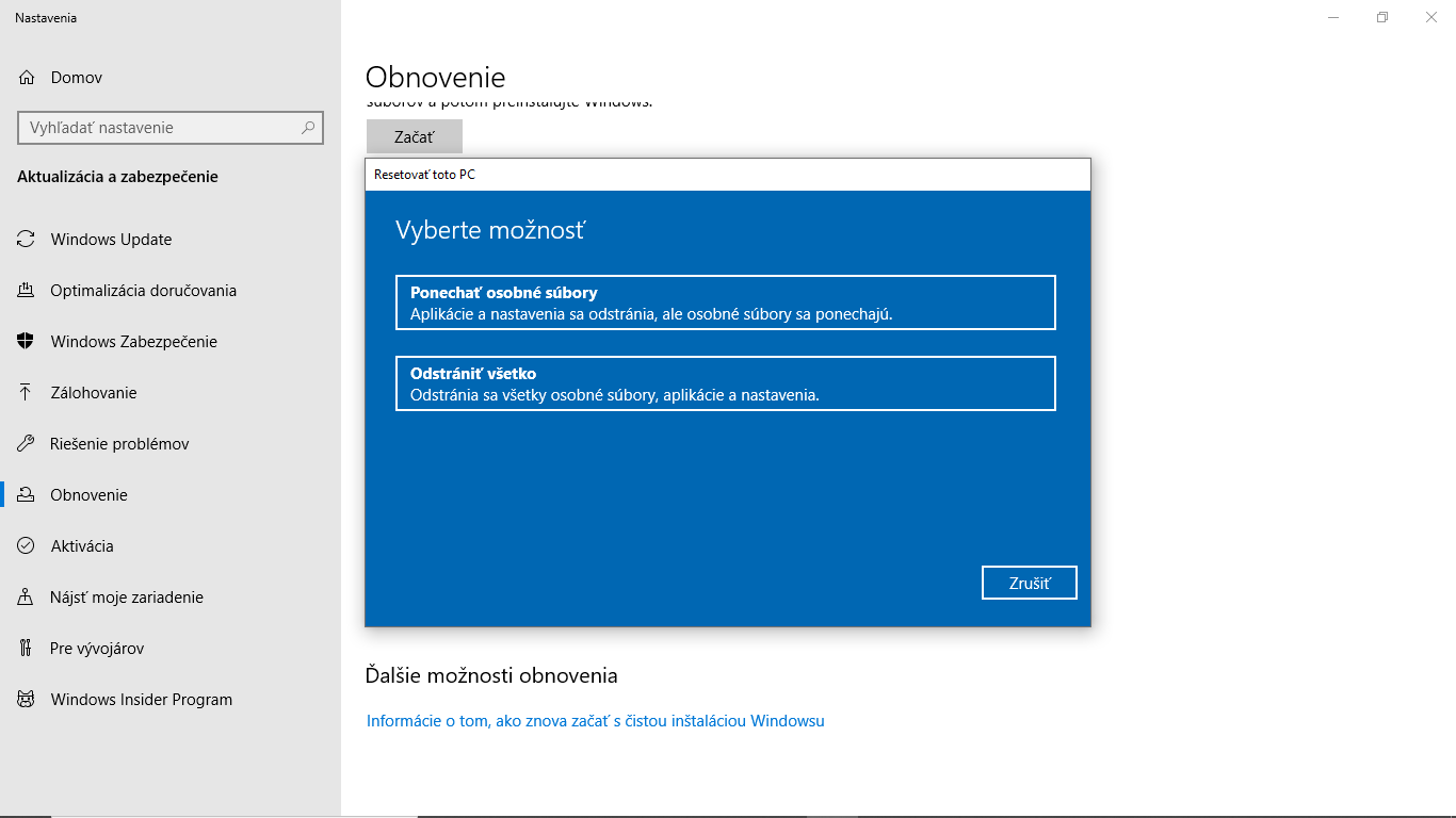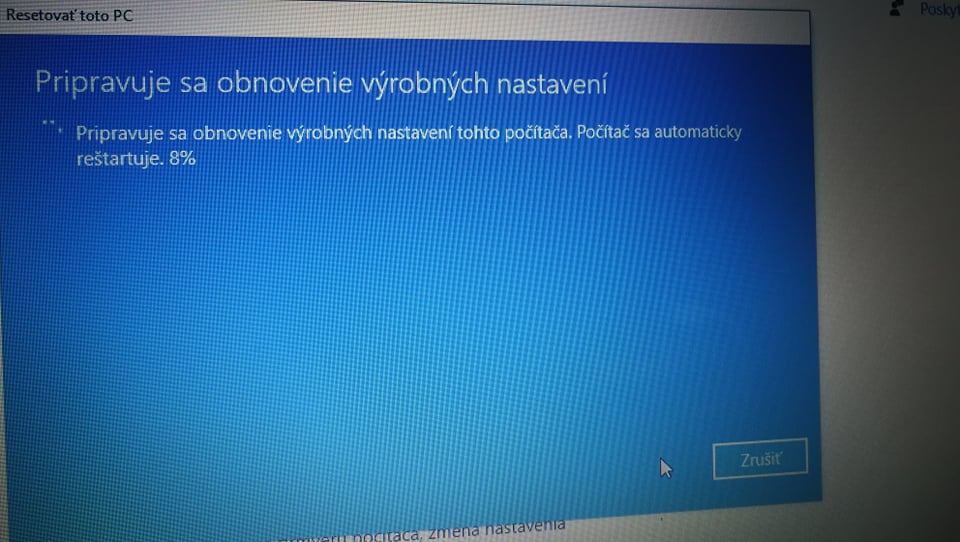 Reinštaluje sa tak chvilu a tam davá že kolko % a potom sa mi to zruši a hodi na modru obrazovku kde su niake 4 texty...