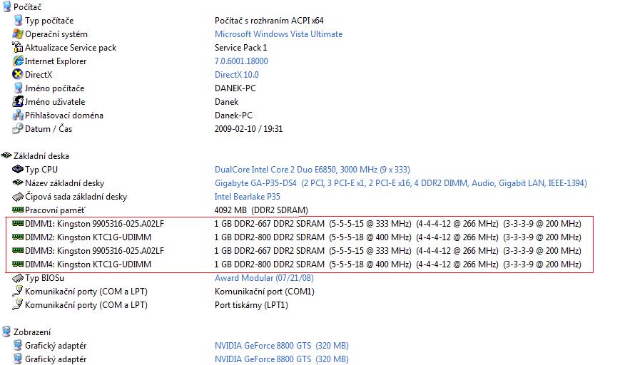 GA-P35-DS4, Core2 Duo E6850 3,0GHz, Zotac GTX 285 1GB, Enermax Liberty 620W, 2x1GB Kingston 667MHz + 2x1GB Kingston 800Mhz, 3x320GB Seagate Barracuda, Sony Nec AD-7173S