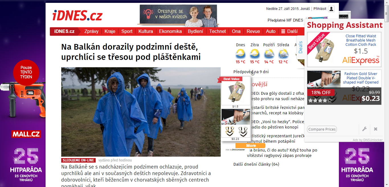 Dobrý den. Na ntb v internetových prohlížečích mi vyskakuje nechtěná reklama, a to i přesto, že mám nainstalován ad-block. Teď používám Operu, protože v Google chrome to bylo ještě horší. Posílám obrázek stránky s nevyžádaným obsahem - ten aliexpress po pravé straně ( skáče tam z idnes i heureky, při prohlížení ) . Poradíte, co s tím? Zkoušel jsem se podívat do programů a funkcí, žádný podezřelý software, projel jsem to ccleanerem i adwcleanerem a nic. ----- dívám se odkud se tam ta reklama bere, zobrazuje se čekám na cpex.demdex nebo a.visadd vlevo dole. Díky