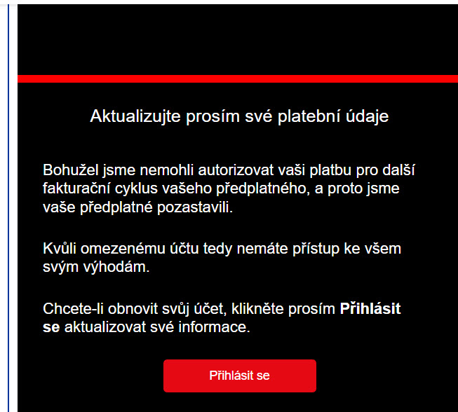 Dorazil mě email od Netflixu, abych obnovil předplatné, a na tlačítku, kde mám kliknout, je tato adresa: https://www.travel-profi.cz/etc/ne/687205