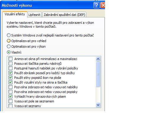 Jo myslím to pozadí , a v tom ovládacím panelu jak popisuješ jsou zaklikaný všechny okýnka včetně těch stínů
