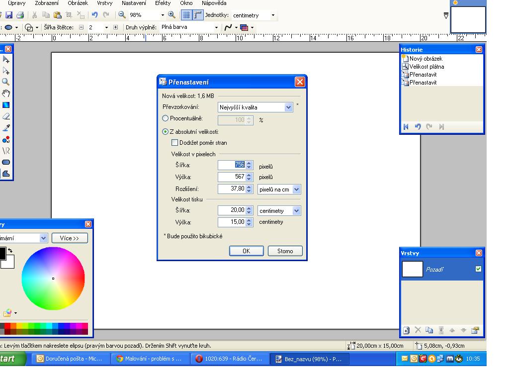 Kdy tam dám pravítka a vyberu plochu 20x15 cm, tak to sice dle pravítka odpovídá, nicméně 1 cm na pravítku je 1,3 cm ve skutečnosti. Ovšem nevím, jak by to vytisklo.