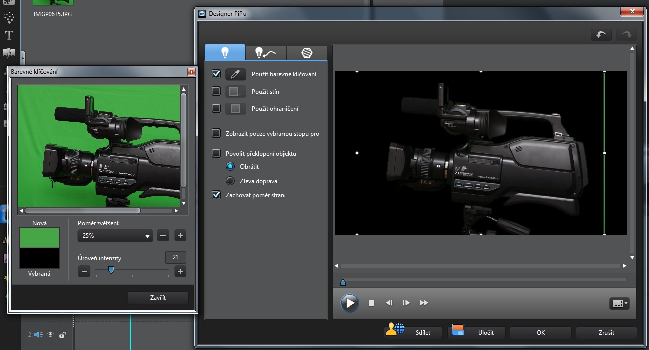 3) Funguje klíčování na kombinace: fotka+video, video+fotka, fotka+fotka i video+video (v popředí a pozadí)?