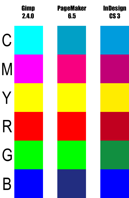 "Jak je vidět, tisk doplňkových barev (sytá červená, sytá zelená a sytá modrá) je téměř nemožný. Je to způsobeno zejména právě tím, že monitor přímo vyzařuje světlo, kdežto výtisk světlo odráží. Naštěstí v případě fotografií jde o jev, který není ve výsledku patrný." převzato z wikiny.