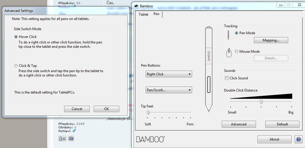 Já osobně teda už nevím, ale zkus se podívat do toho rozšířeného nastavení (advanced a maping), nebo zkus stáhnout nové ovladače http://www.wacom.eu/index2.asp?lang=en&pid=29&gm=1