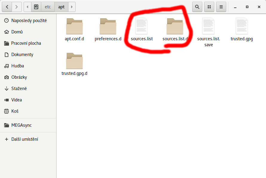 a v původním adresáři apt vytvořím jen pravým, nová složka a pojmenovat ji jako source.list.d