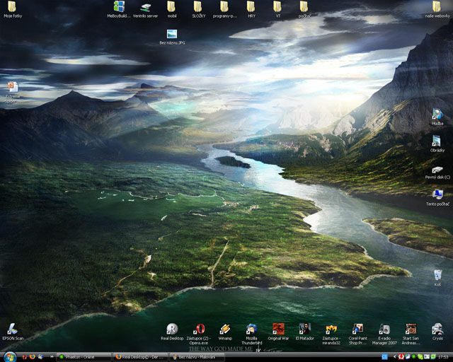 akem: Ty myslíš to bílé, okolo toho obrázku, že? Vyjadřuj se prosím přesně... To bílé okolo fotky dělá můj počítač. Nevím proč. Nikdy jsem na to nepřišel. Viz zde... Vyfocená moje plocha.