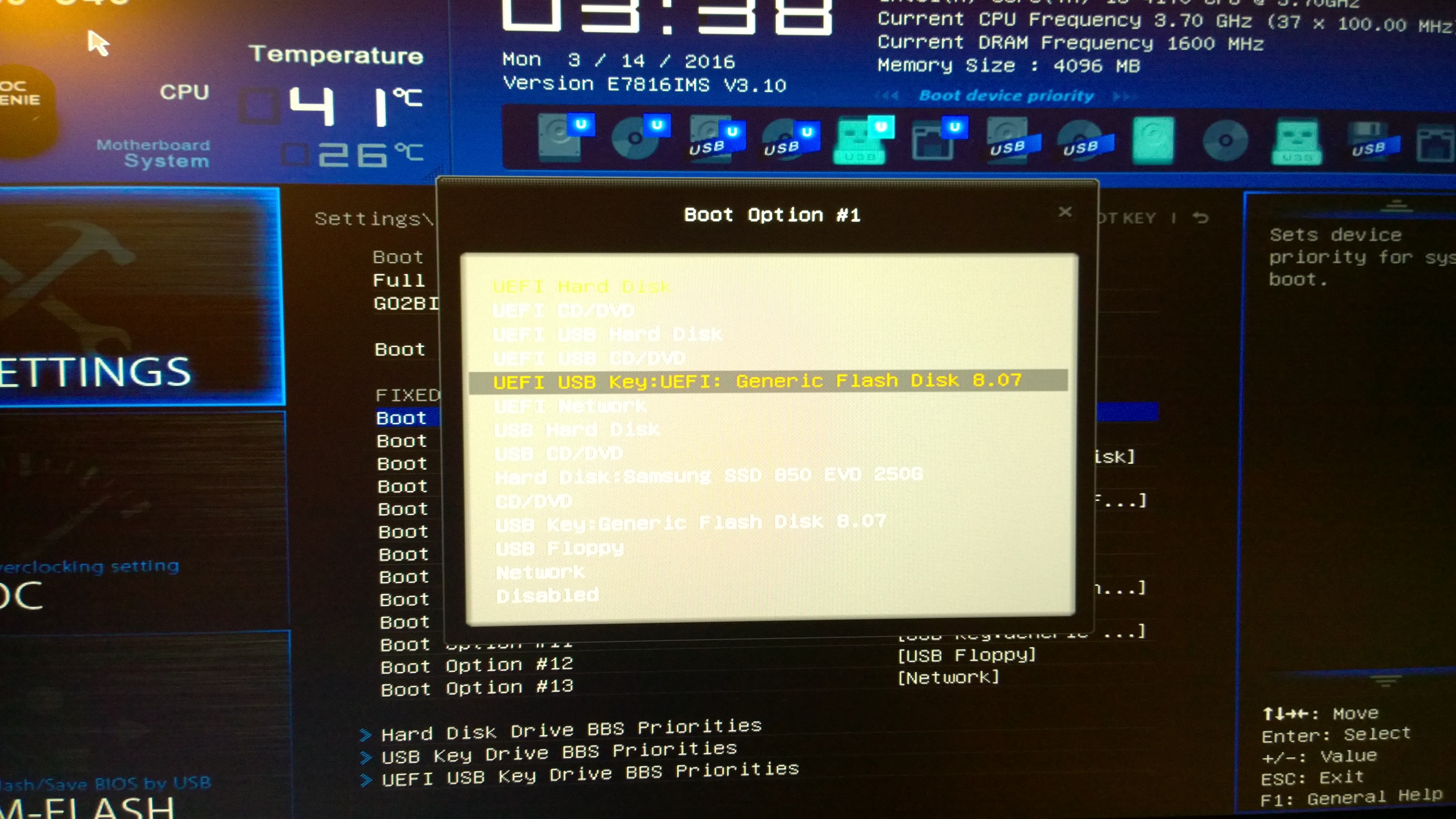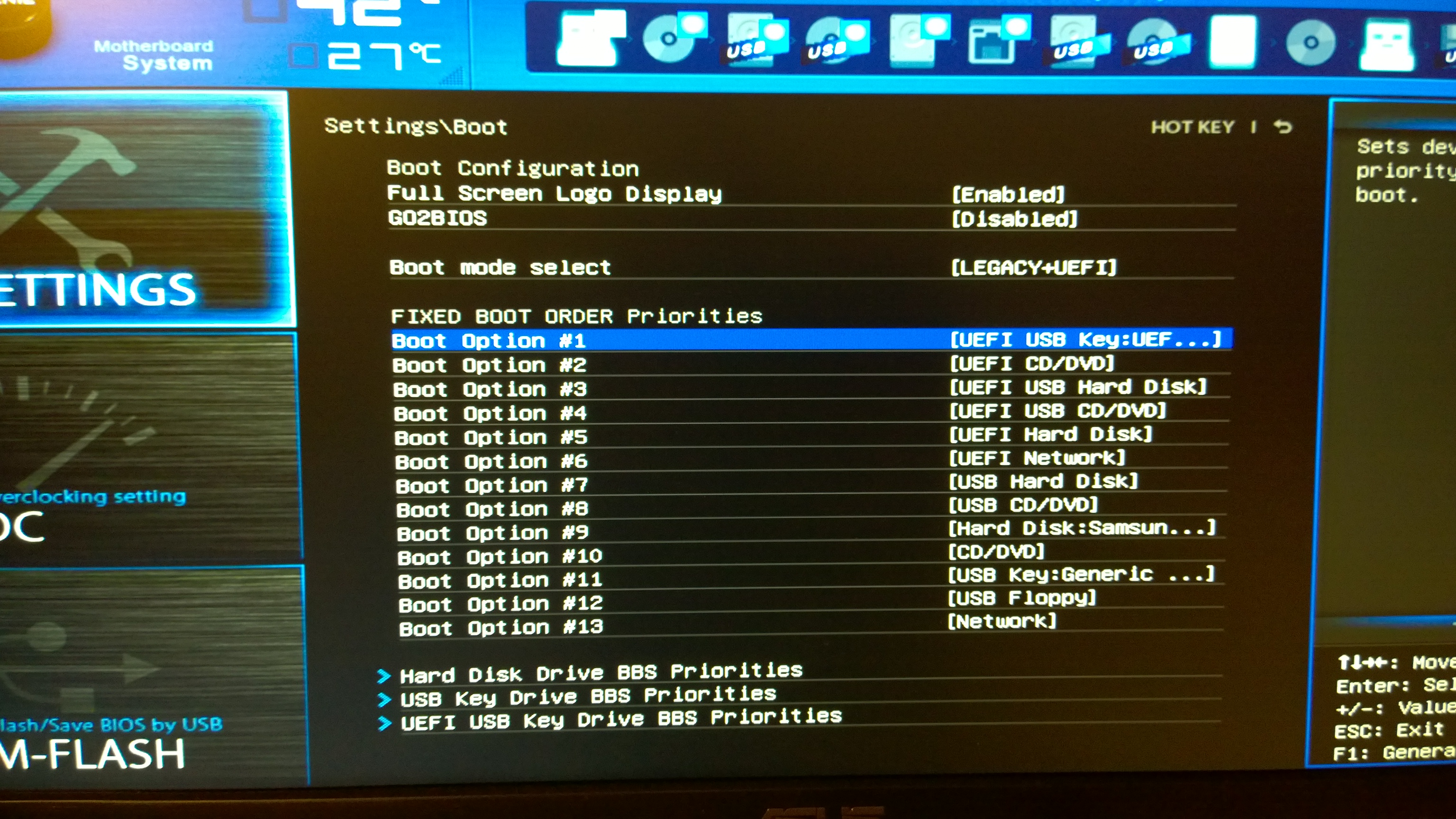 HappyMental píše:Jen mě tak napadlo-nemůže to být UEFI? Co se stane když zvolíš boot z usb, ale bez uefi? (Máš to jako boot option #11) nebo bych to zkusil nastavit stejně, ale namísto usb key bych zvolil usb Hard Disk