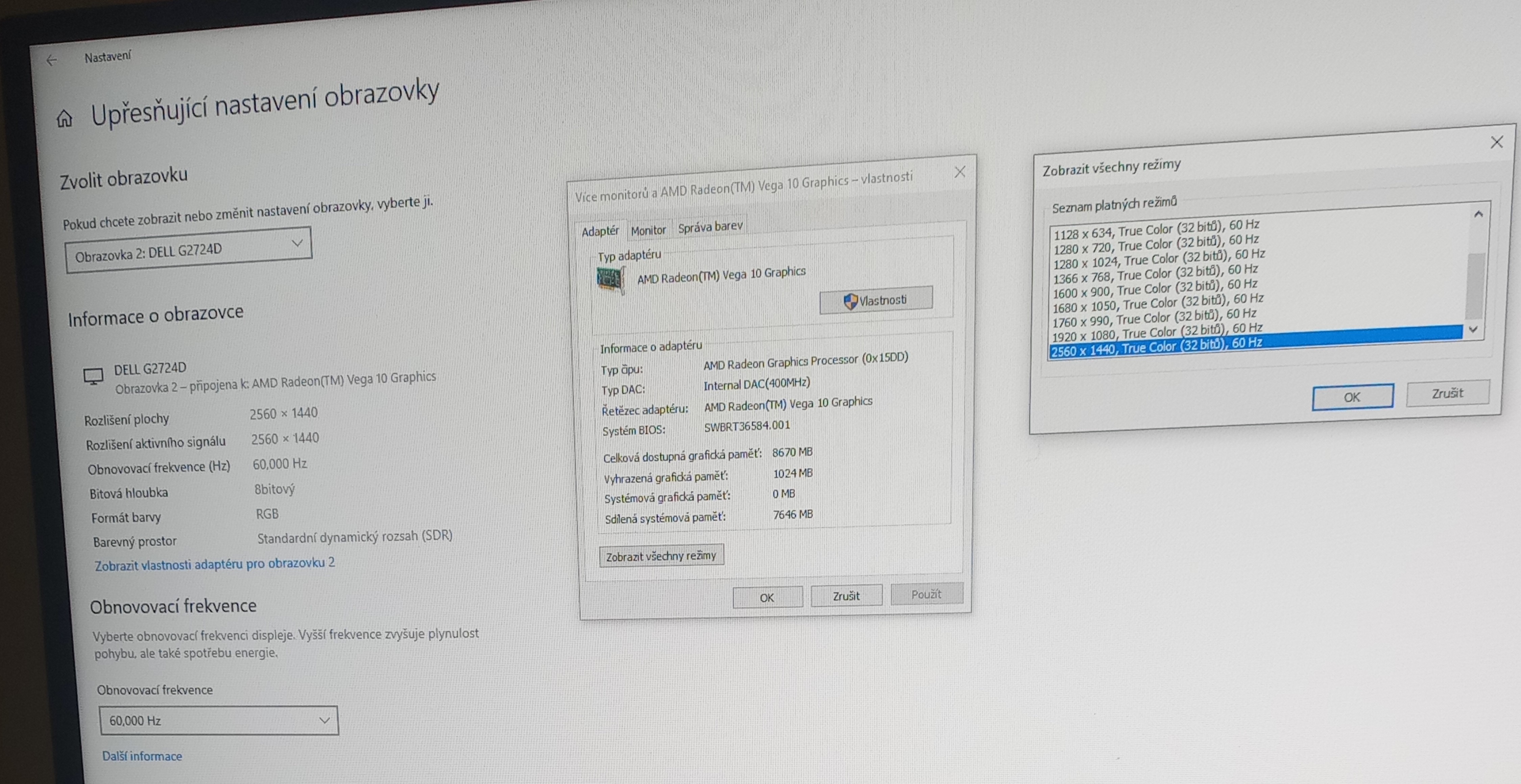 Aha to pak mnohé vysvětluje proč můj HP noťas který má cpu AMD Ryzen 7 PRO 2700U s integrovanou grafikou Radeon RX Vega 10 má jet na rozlišení 2560x1440 ale jede pouze na rozlišení 1920x1080,podle zdroje na techpowerup u položky rx Vega 10.Zalezi i na tom jake rozhrani a jakou verzi komunikacniho rozhrani ma zakladni deska - pokud ma pouze HDMI vystup, tak to