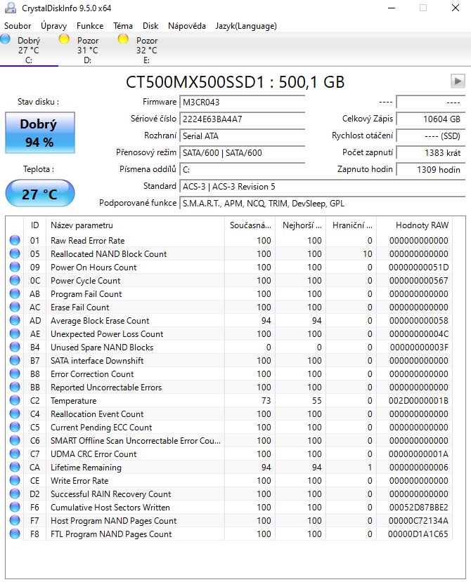 Re: Crucial MX500 - náhodne hlášení o prehriati