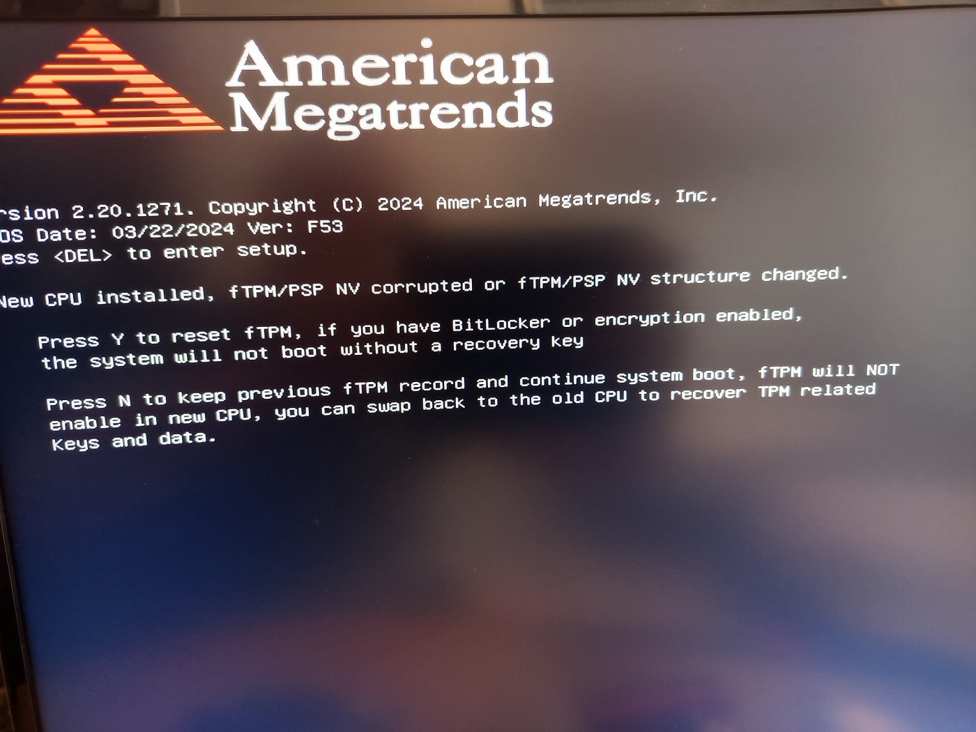 Vyměňoval sem v základní desce gigabyte ab350m-d3h procesor Ryzen 5 4600G za Ryzen 3 2200G při prvním spuštění po výměně mi to hodilo hlášku skrze šifrování TPM (viz příloha) dal sem Y jako potvrzení což bylo tedy co už vím špatně.