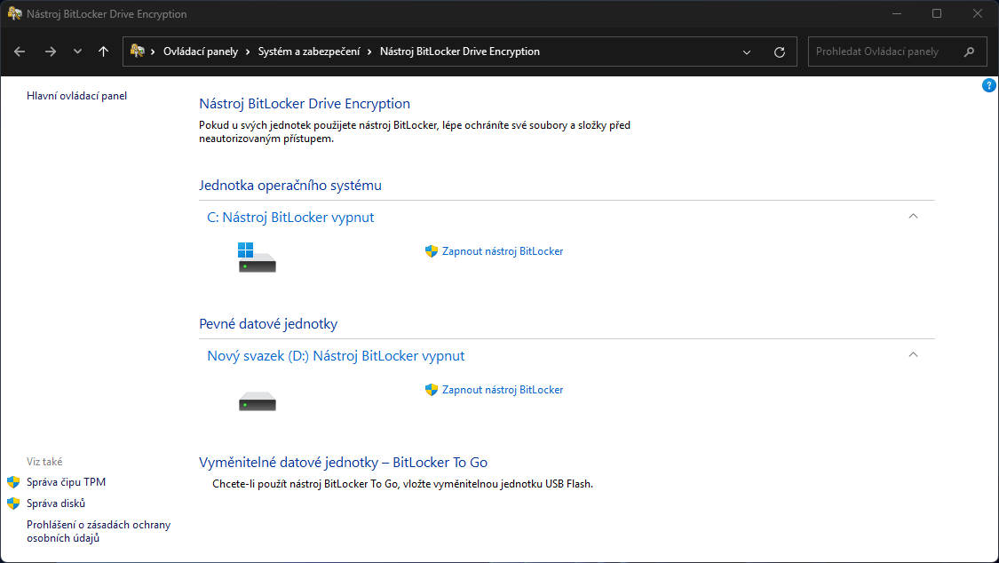 Je naprosto jiste, ze neni aktivni Bitlocker?