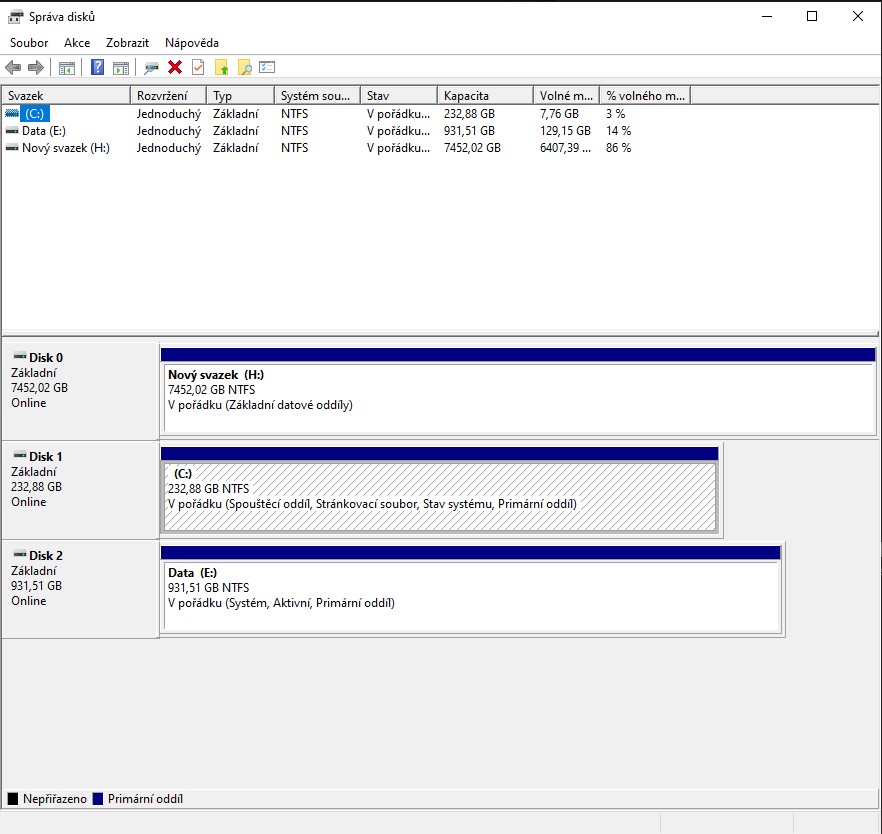 poznámka: jen na jednom disku (a tím myslím SSD) je nainstalován OS, všechny ostatní disky slouží jako data (formát NTFS)